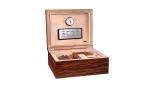 Der moderne und funktionale Humidor der Marke adorini aus der Serie Basic in der Größe M überzeugt mit seiner matten Ebenholz Oberfläche und Vielseitigkeit. Mit Platz für ca. 75 Zigarren oder kleinere Zigarrenkisten bietet er eine ideale Lösung für die sichere Lagerung Ihrer Zigarren. Im Lieferumfang sind ein analoges Hygrometer und ein passiver Schwammbefeuchter enthalten. Das Hygrometer misst die Luftfeuchtigkeit auf Basis einer Metallspirale und wird zusammen mit dem Befeuchter magnetisch und flexibel im Deckel des Humidors befestigt. Der Humidor verfügt über matt silberne Scharniere im Innenraum und eine besonders starke Dichtungslippe, die für den optimalen Erhalt der Luftfeuchtigkeit sorgt. Ein vertikaler Divider ermöglicht zusätzliche Unterteilung des Innenraums.