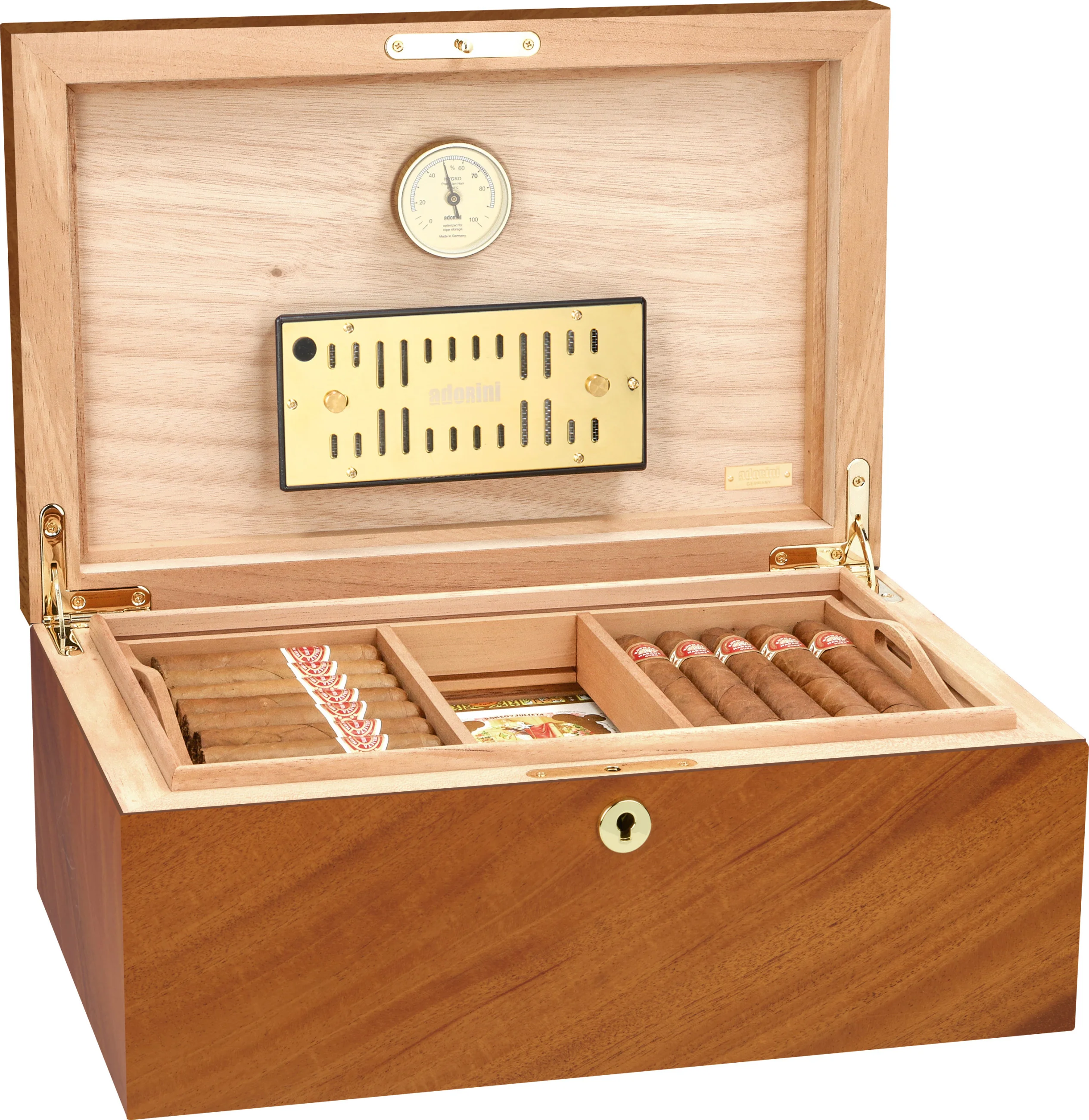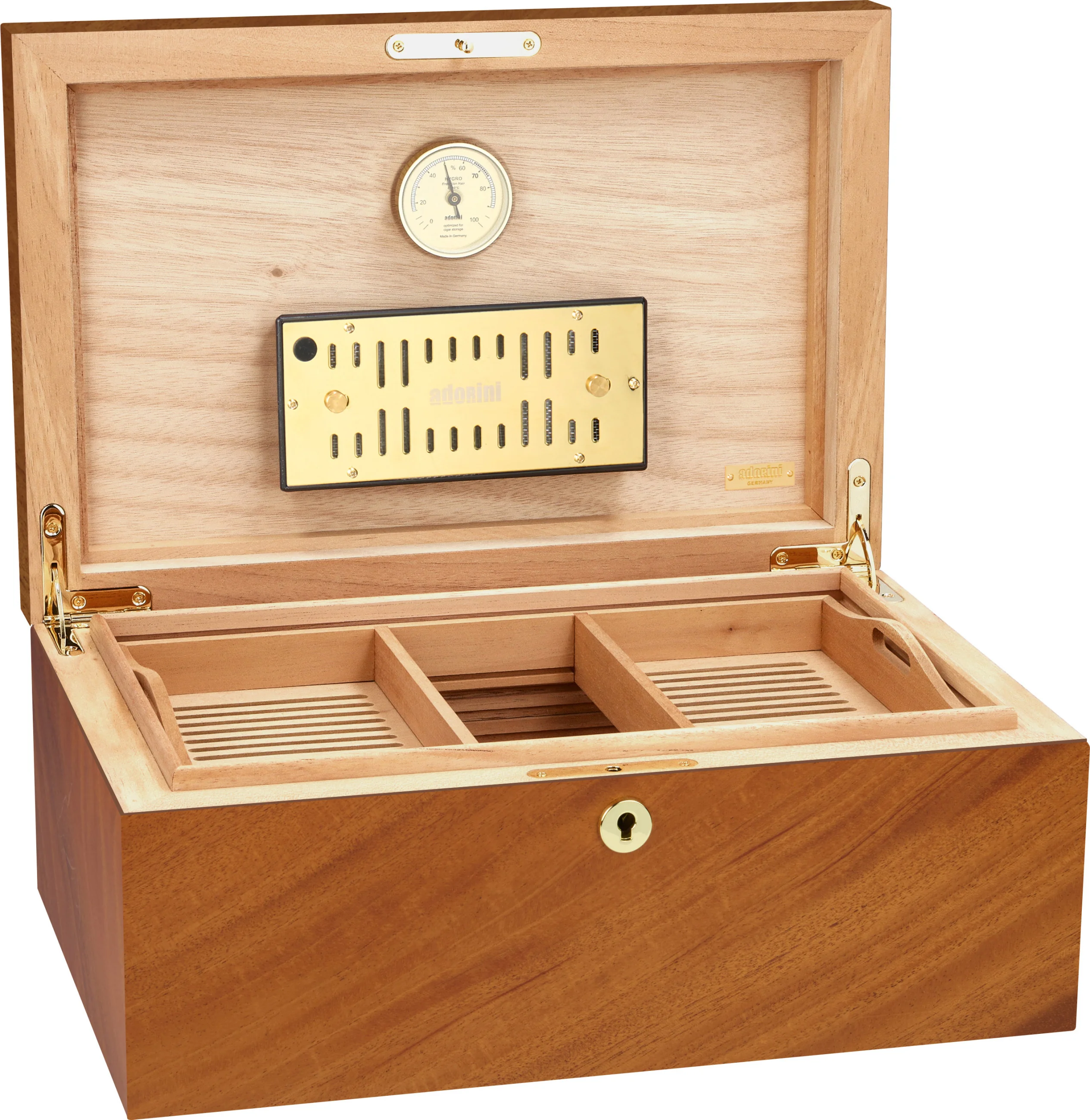 Der adorini Humidor Mahagoni Specially Selected Grande ist ein eleganter Humidor der Größe Grande aus der im Jahr 2025 neu präsentierten Kollektion Specially Selected. Der Name „Specially Selected“ steht für sorgfältig ausgewählte Echtholzfurniere europäischer Herkunft.