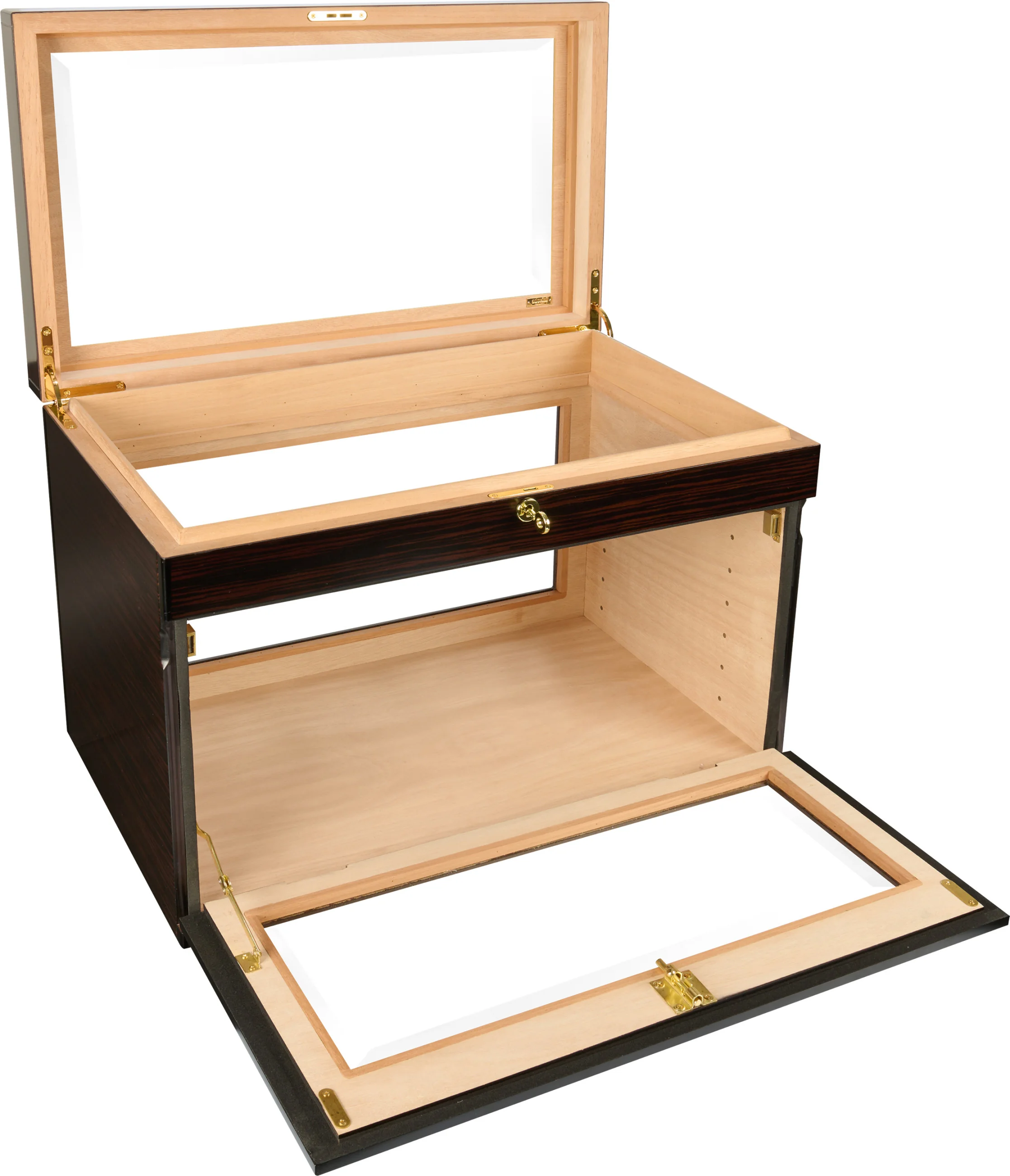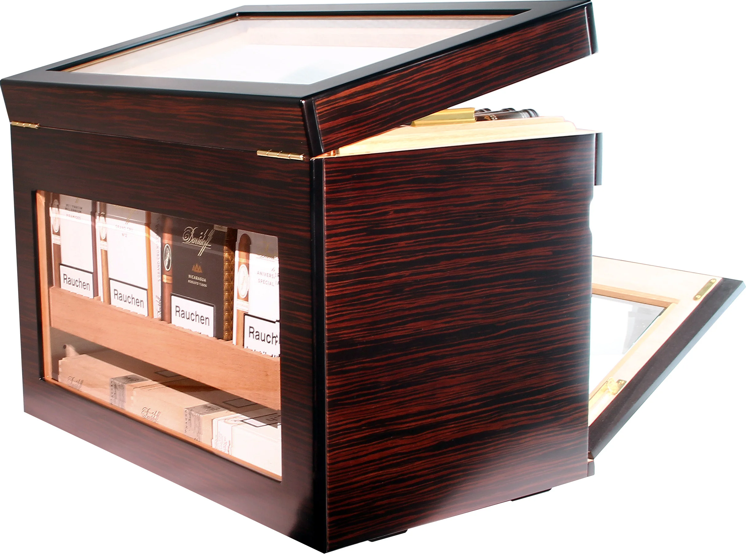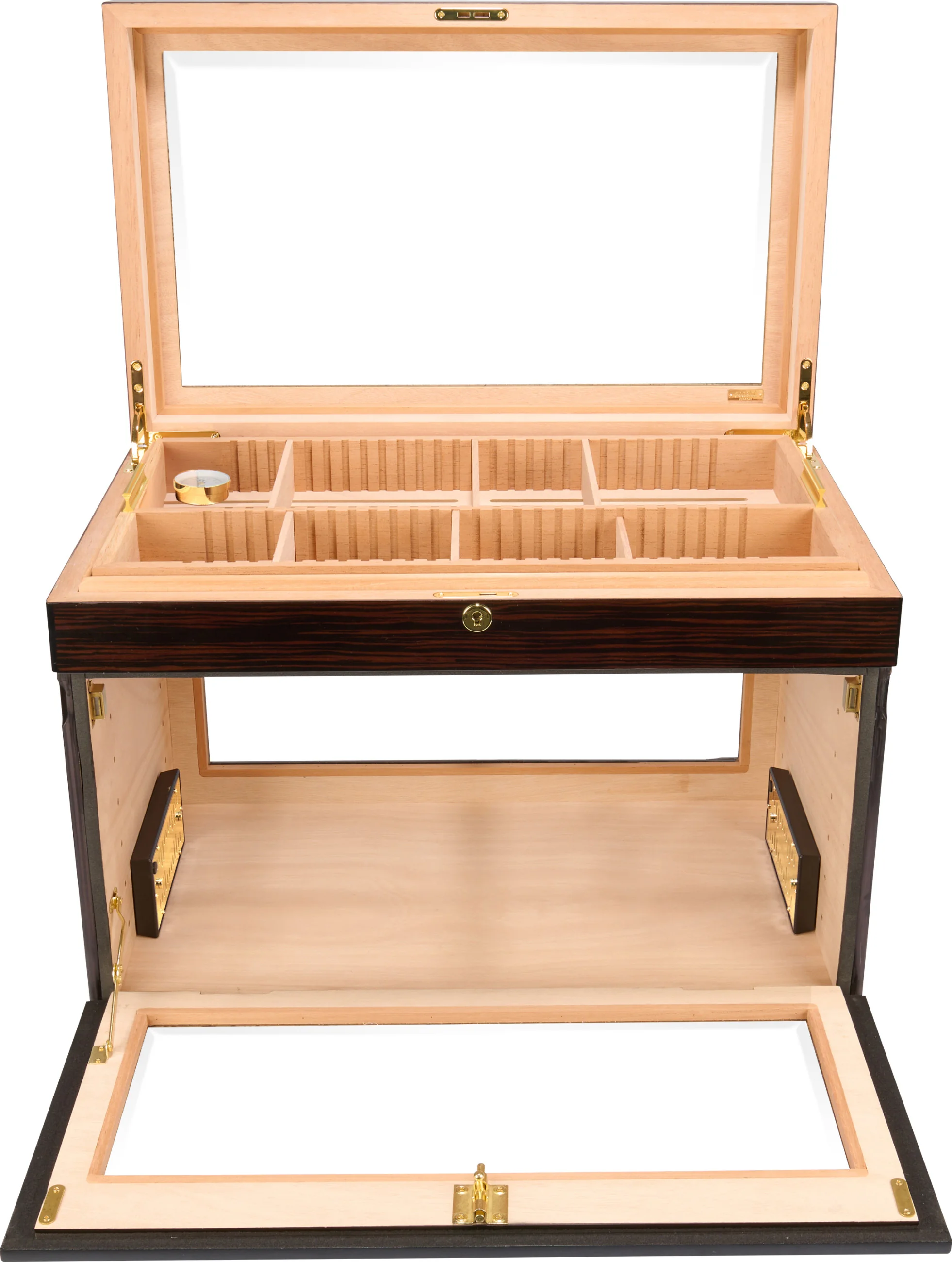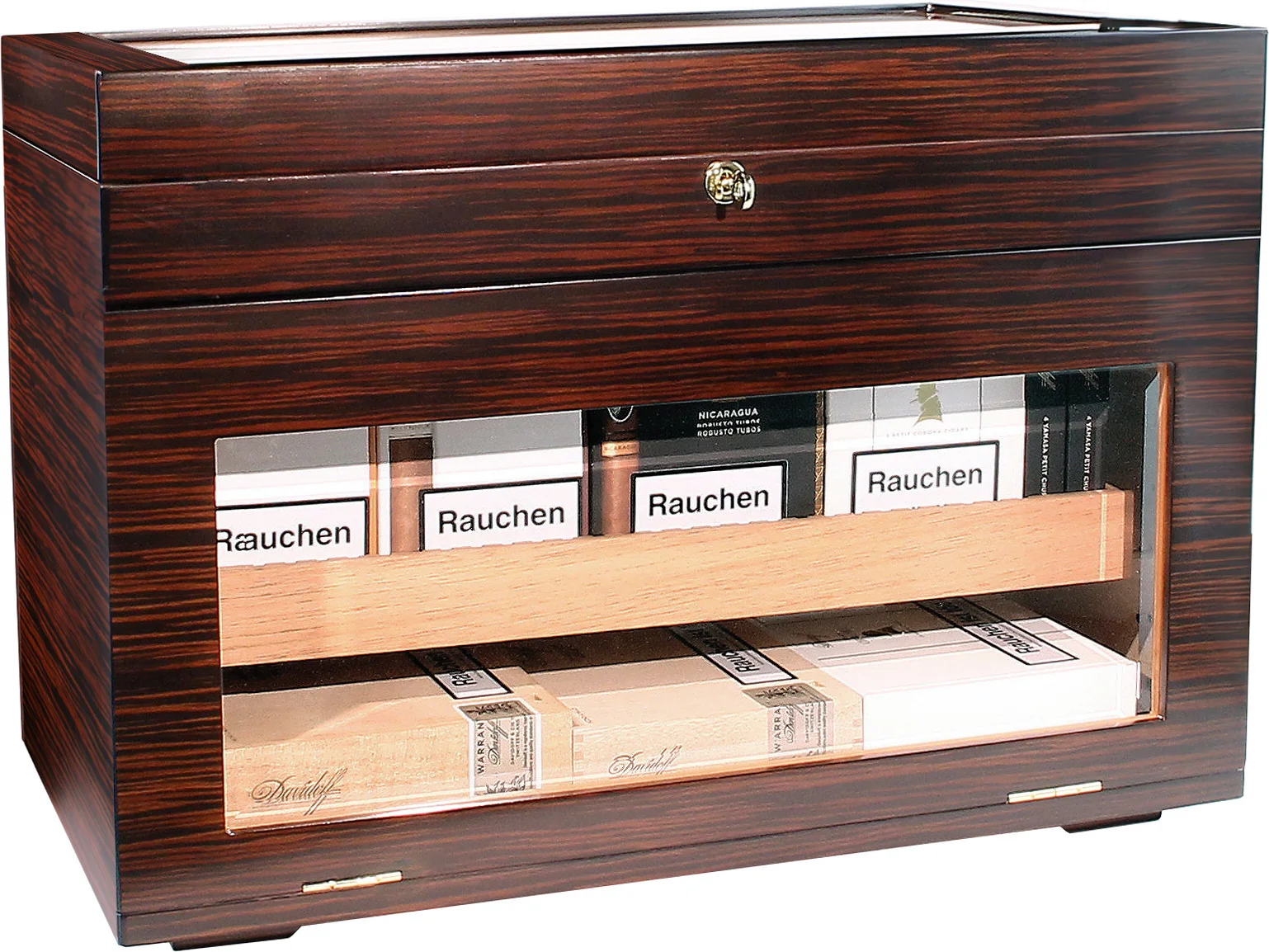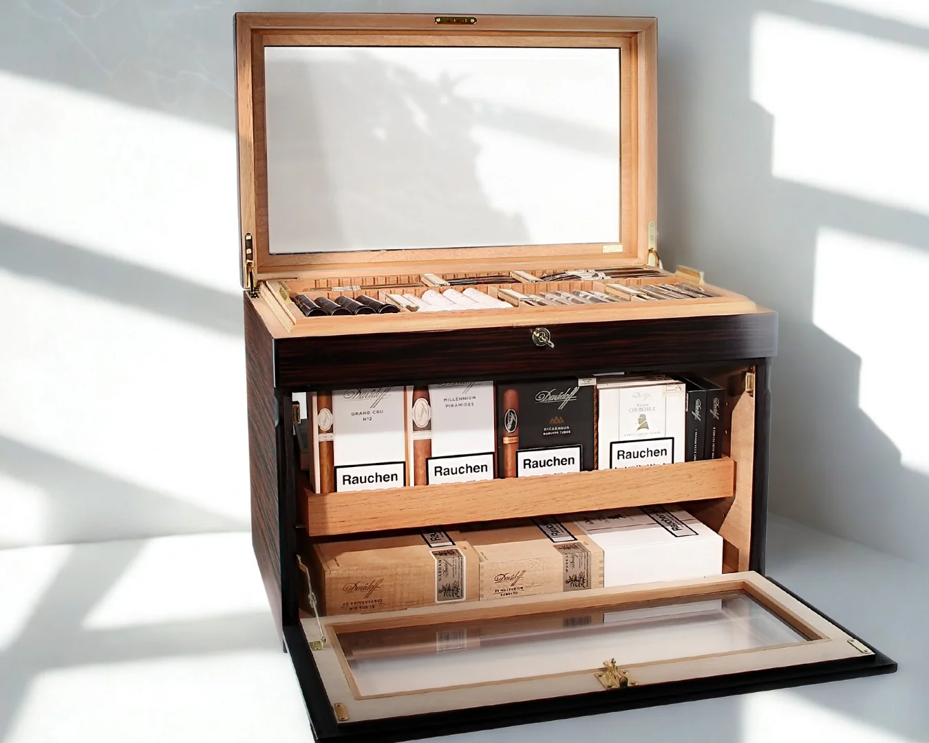 Auf mehreren Ebenen lassen sich einzelne Zigarren, Schachteln oder auch ganze Zigarrenkisten lagern. Der Innenraum ist variabel unterteilbar: