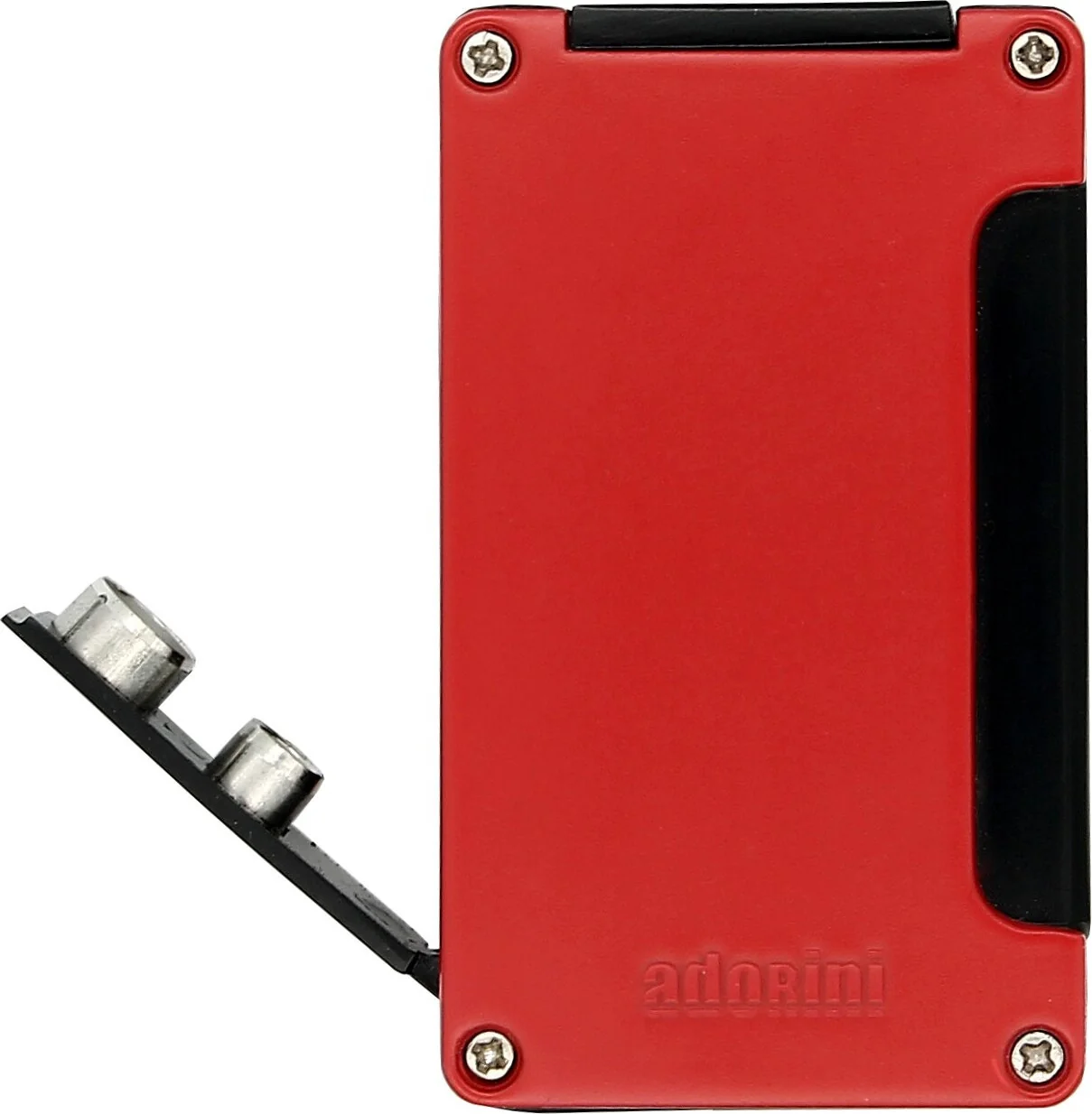 Es gibt insgesamt sechs Farben, aus denen Sie wählen können, aber keine zieht die Aufmerksamkeit so sehr auf sich wie das adorini Jet Feuerzeug in rot. Der robuste Edelstahlkörper ist in Schwarz gehüllt, während die Vorder- und Rückseite mit einem schönem roten Lack-Finish ins Auge sticht.