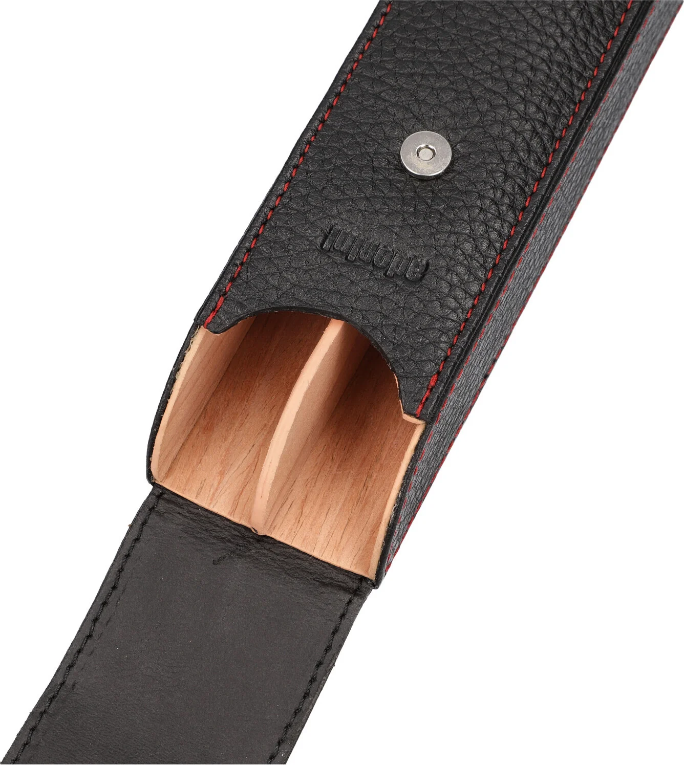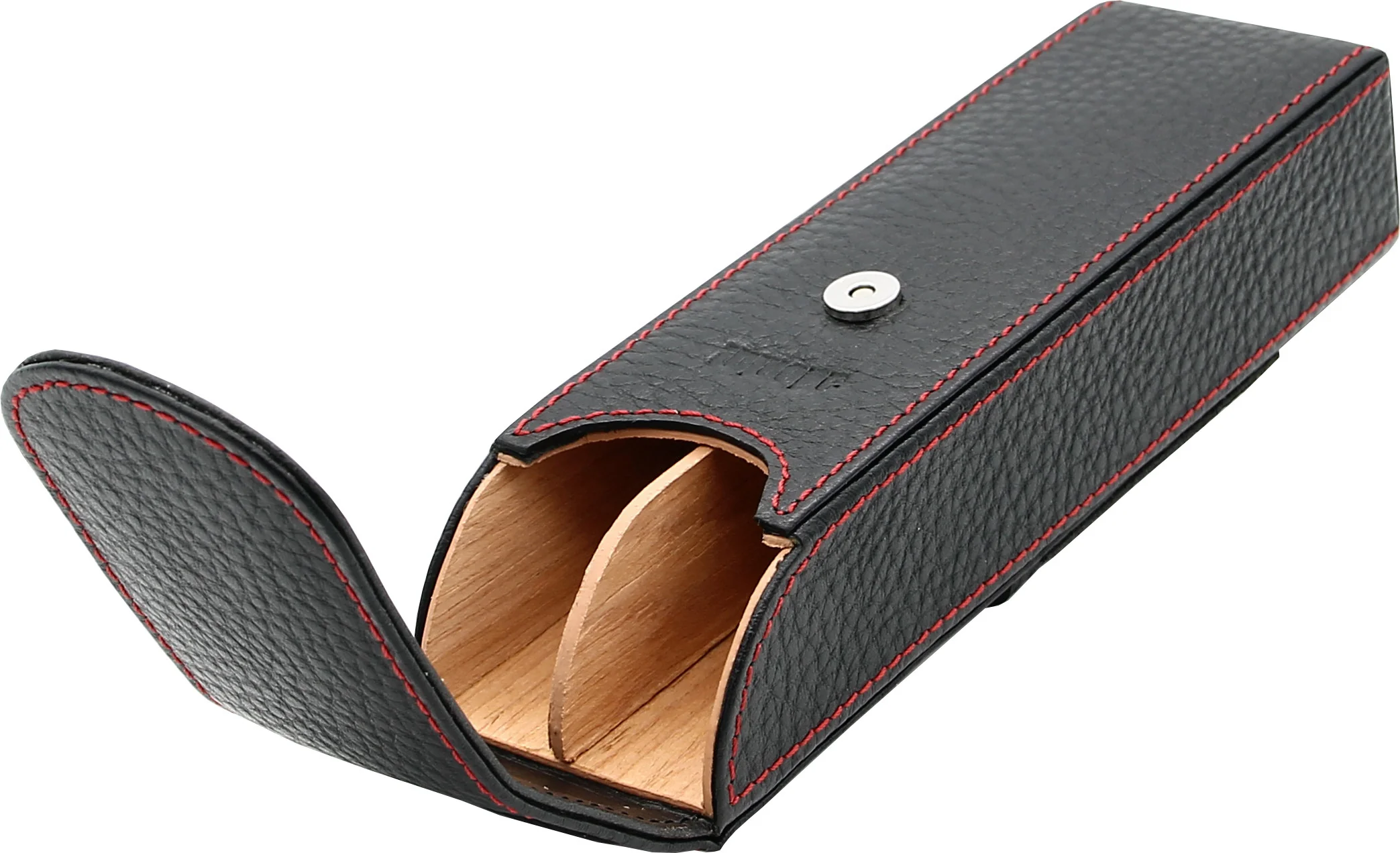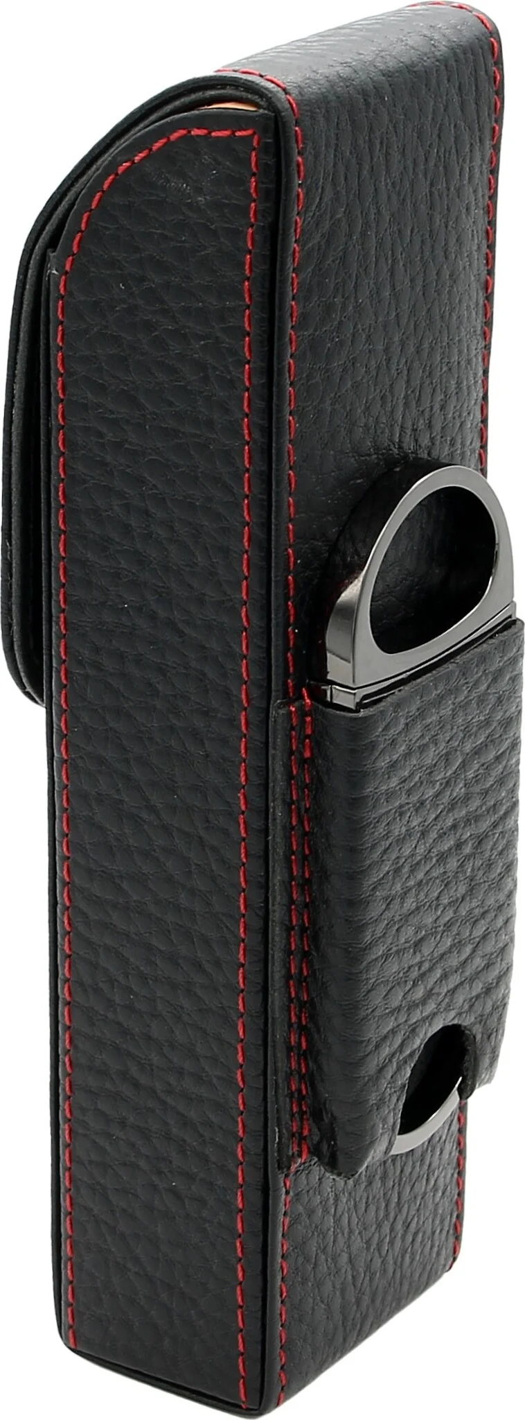 adorini Taschen Zigarrenetui Schwarz mit roter Ziernaht mit Tasche für Zubehör