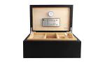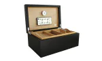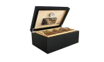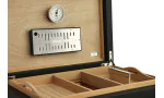 Der Humidor ist mit einem Befeuchter auf Basis eines Acrylpolymer Fleeces ausgestattet, der eine konstante Luftfeuchtigkeit im Inneren gewährleistet.