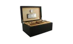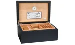 Der adorini Torino Grande Deluxe Humidor, ein Klassiker der Marke adorini, ist die großformatige Version des beliebten Medium Humidors. Mit einer Kapazität von bis zu 125 Zigarren bietet er ausreichend Platz für eine umfangreiche Zigarrensammlung. Er besticht durch sein mattes schwarzes Finish und die versilberten Scharniere, die ihm ein edles Aussehen verleihen. Der Humidor verfügt über einen extra starken Korpus und ist innen mit Zederholz furniert, um optimale Lagerbedingungen zu gewährleisten.