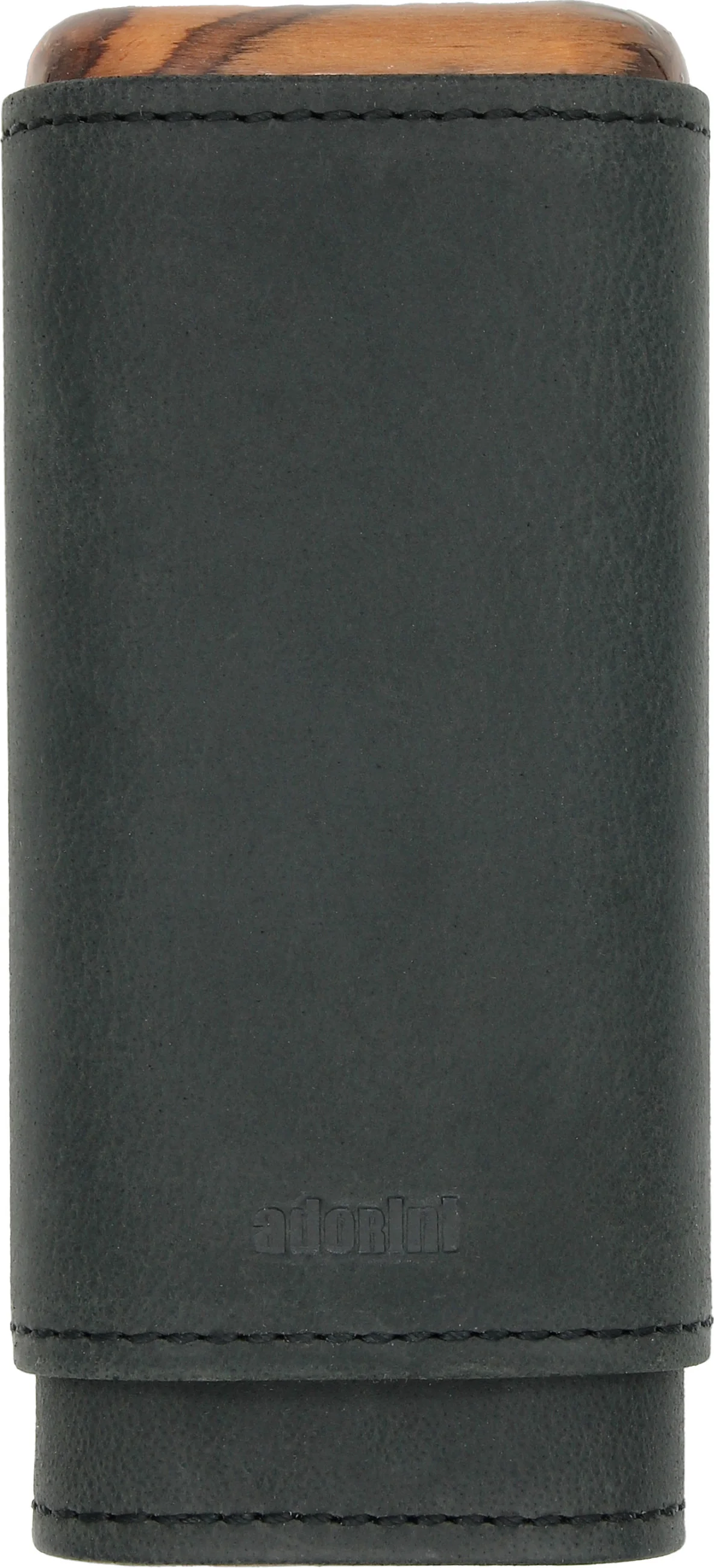 adorini Zigarrenetui für 2-3 Zigarren Leder schwarz Ober- und Unterseite Holz
