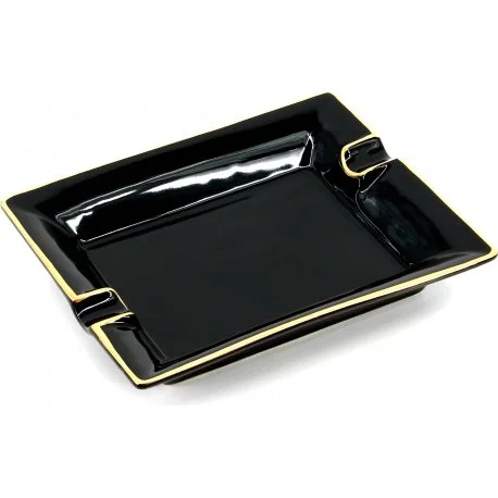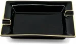 Sehr schöner und hochwertiger Aschenbecher. Tiefes Schwarz und luxuriöse Goldumrandung.