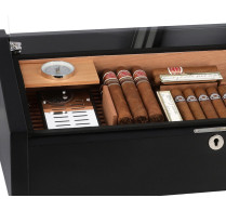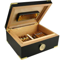 Ein Befeuchter ist ein Gerät, das die Feuchtigkeit in einem bestimmten Raum verteilt und reguliert, um sicherzustellen, dass Premium-Zigarren in bestmöglichem Zustand gehalten werden, idealerweise zwischen 68 % und 74 % relativer Luftfeuchtigkeit. Wenn die Zigarren in diesem Bereich gelagert werden, wird verhindert, dass der Tabak aufgrund von Trockenheit reißt und die Gefahr, dass die Zigarren aufplatzen oder aufgrund eines Überschusses an Feuchtigkeit Schimmel bilden, wird eingeschränkt.