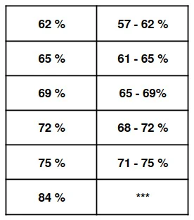 Viele Nutzer stellen sich die Frage, wie exakt ein Boveda-Pack die angegebene Luftfeuchtigkeit einhält. Die folgende Übersicht zeigt, in welchem Bereich sich die tatsächliche relative Luftfeuchtigkeit im Humidor typischerweise bewegt – abhängig von der gewählten Pack-Variante.