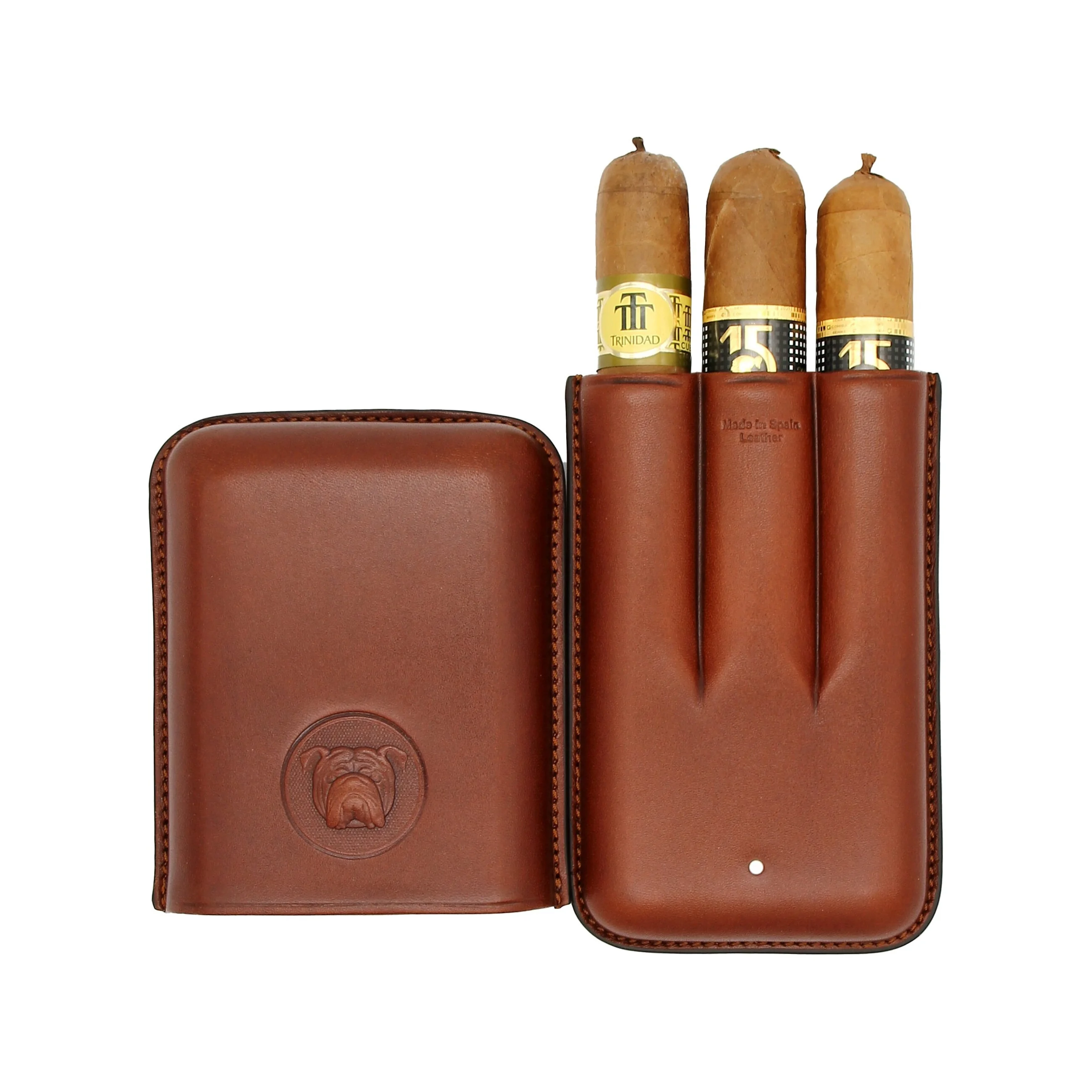 Das Bulldog by Dunhill Zigarrenetui Robusto in Braun verbindet Eleganz und Robustheit in einem hochwertigen Accessoire. Gefertigt aus echtem Leder und hergestellt in Spanien, überzeugt es durch klassische Handwerkskunst und markantes Design.