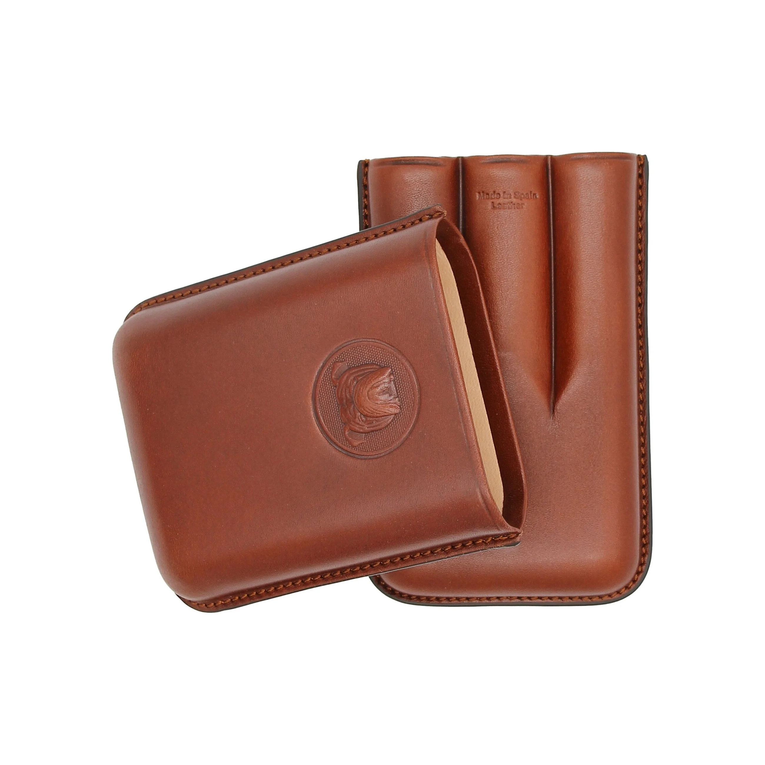 Im Inneren bietet das Etui Platz für drei Zigarren unterschiedlicher Formate. Praktische Einkerbungen sorgen für sicheren Halt beim Transport. Das Innere ist mit weichem, hellem Leder ausgekleidet und schützt die Zigarren zuverlässig.