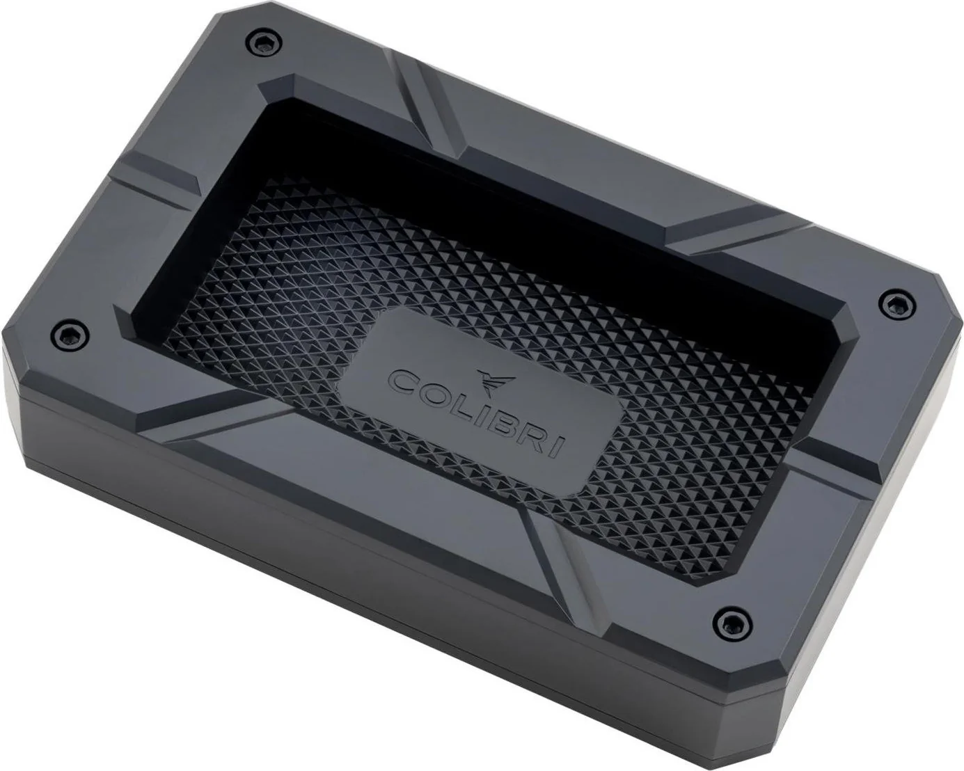 Der tief matt schwarze Zigarrenascher bietet insgesamt sechs Zigarrenablagen und eignet sich damit ideal für den Zigarrengenuss in Gesellschaft. Die großzügig dimensionierte Auffangschale sorgt für ausreichend Platz für Asche und Zigarrenstummel. Zentral im Aschenbecher befindet sich das unverkennbare Colibri Markenlogo, das das Design dezent abrundet.