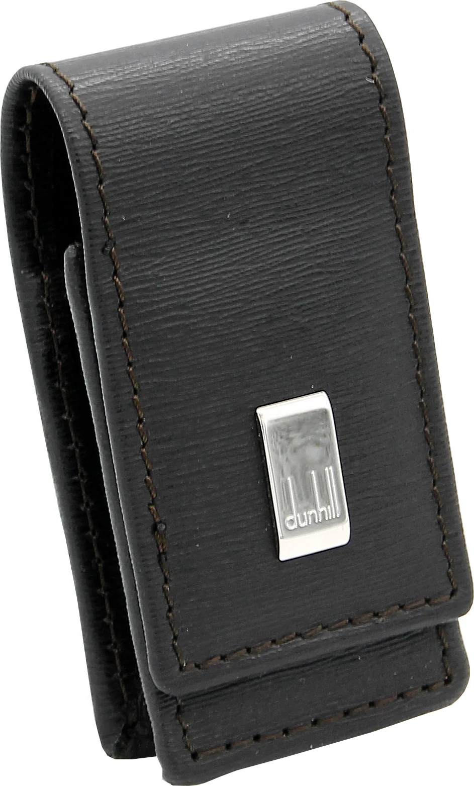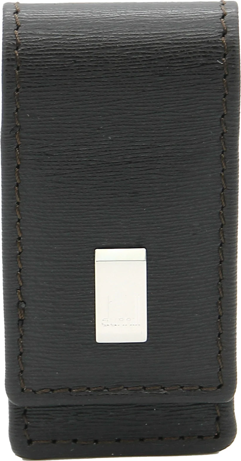 Elegantes Feuerzeugetui der englischen Traditionsmarke Dunhill in dunklem Braun. Innen mit schwarzem Samt ausgekleidet, bietet es optimalen Schutz für Dunhill Rollagas oder Barley Feuerzeuge, egal ob zu Hause, unterwegs oder auf Reisen. Das hochwertige Leder stammt aus Spanien, wie eine Prägung auf der Unterseite verrät.