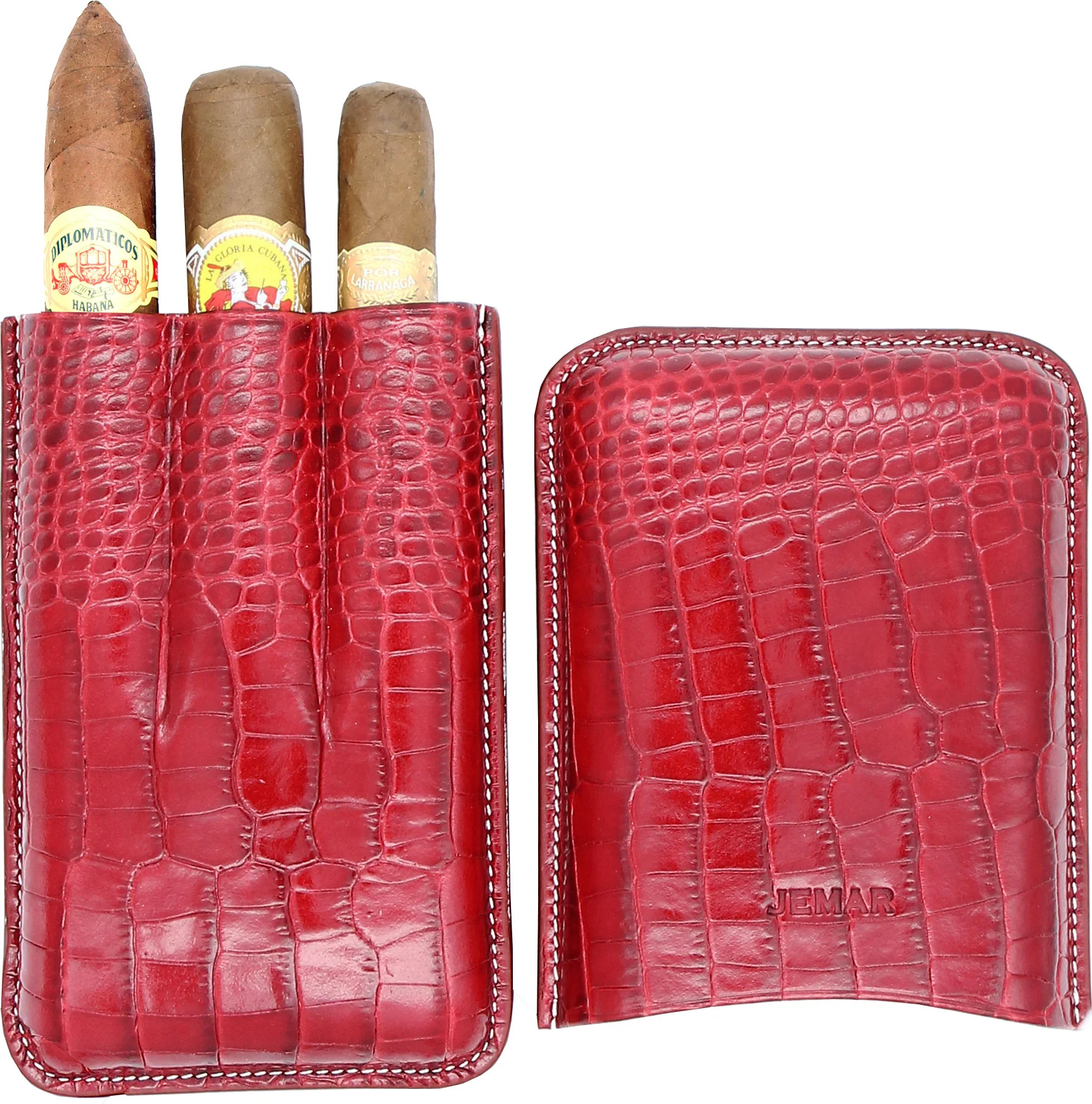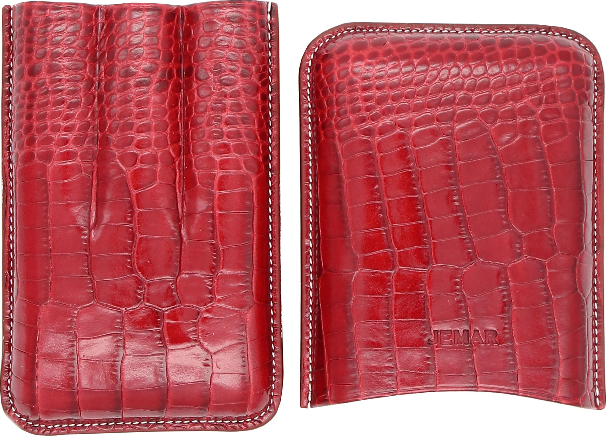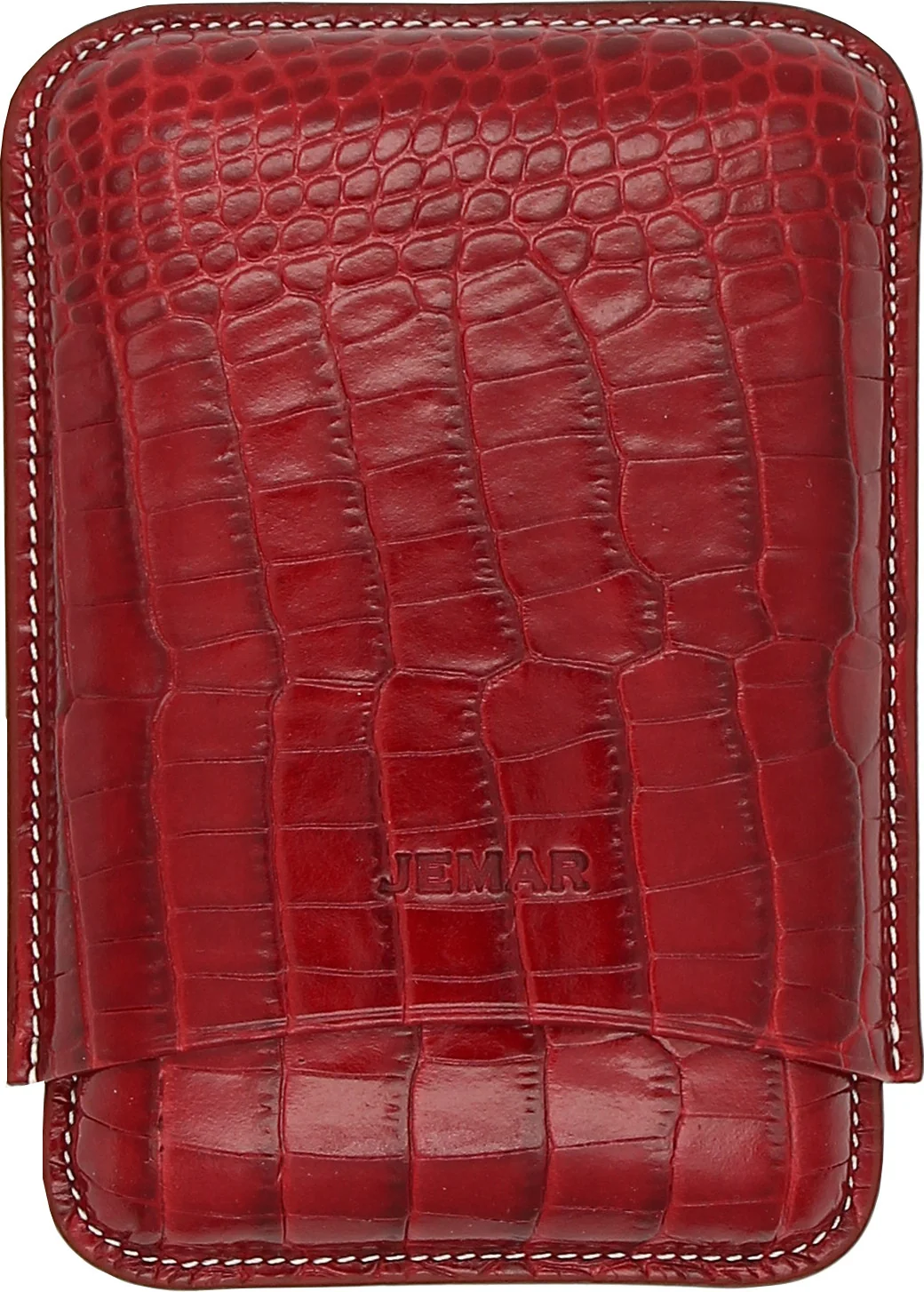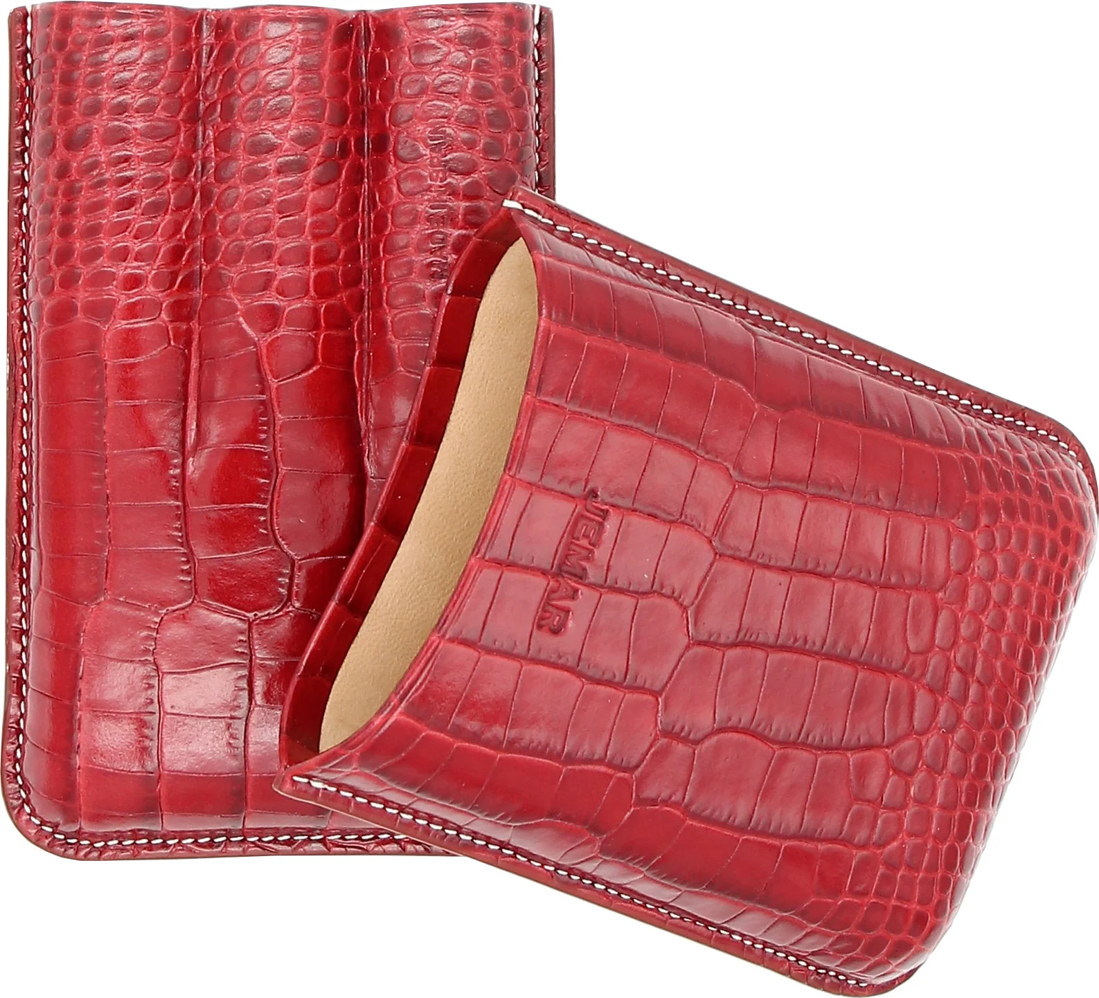 Jemar Leder Zigarrenetui für drei Zigarren Kroko rot