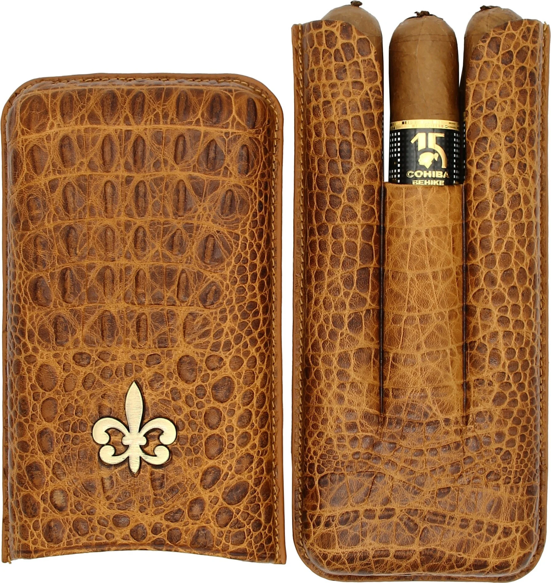 Montecristo Fleur de Lis Zigarrenetui Leder Kroko braun für 3 Zigarren
