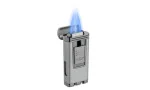 Palio Polaris Jet-Feuerzeug in Silber ist ein leistungsstarkes und modernes Jet-Feuerzeug mit einem eleganten, mattsilbernem Finish und stilvollen glänzenden Akzenten. Mit seinen drei intensiven Jet-Flammen, die sich zu einem kräftigen Brenner vereinen, bietet dieses Feuerzeug eine besonders zuverlässige Zündung für Zigarrenliebhaber. Die Zündung ist durch eine Schutzklappe vor Staub und Flusen abgeschirmt, was die Langlebigkeit und konstante Zündfähigkeit des Feuerzeugs sichert. Der Markenschriftzug von Palio ist auf dem Auslöser auf der Vorderseite angebracht und ermöglicht das einfache Entzünden durch Herunterschieben des Auslösers. Ein großes, gut einsehbares Gasfenster mit Füllstandsanzeige befindet sich auf der linken Seite und sorgt dafür, dass der Füllstand stets leicht kontrolliert werden kann. Natürlich ist das Feuerzeug nachfüllbar und die Flammenintensität kann am Fuße des Feuerzeugs ganz bequem ohne zusätzliches Werkzeug reguliert werden.