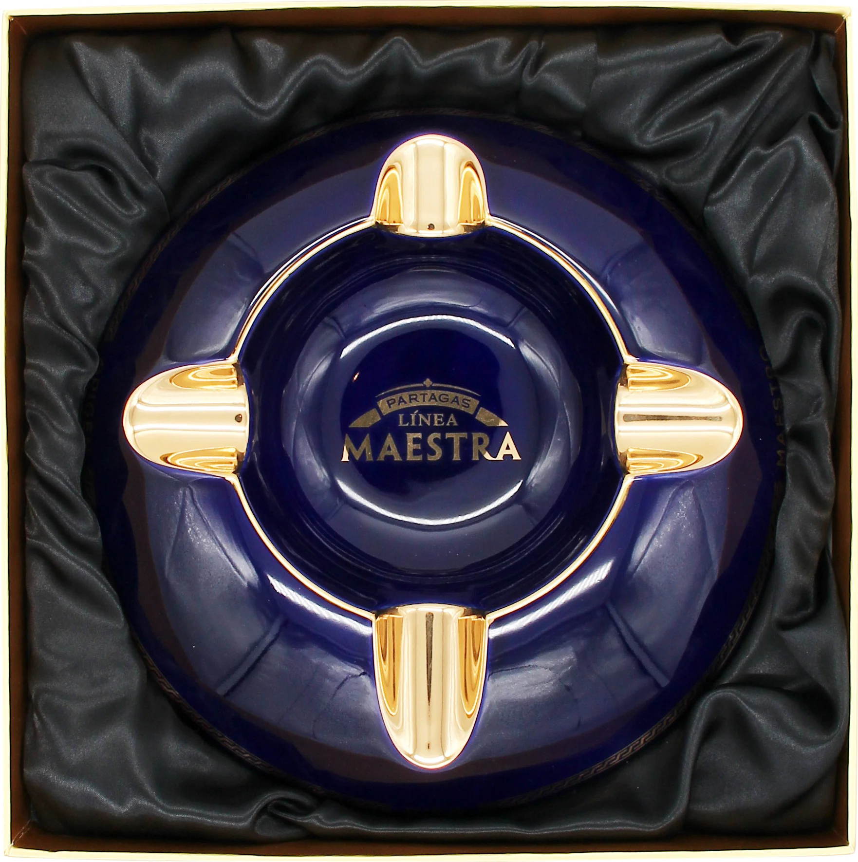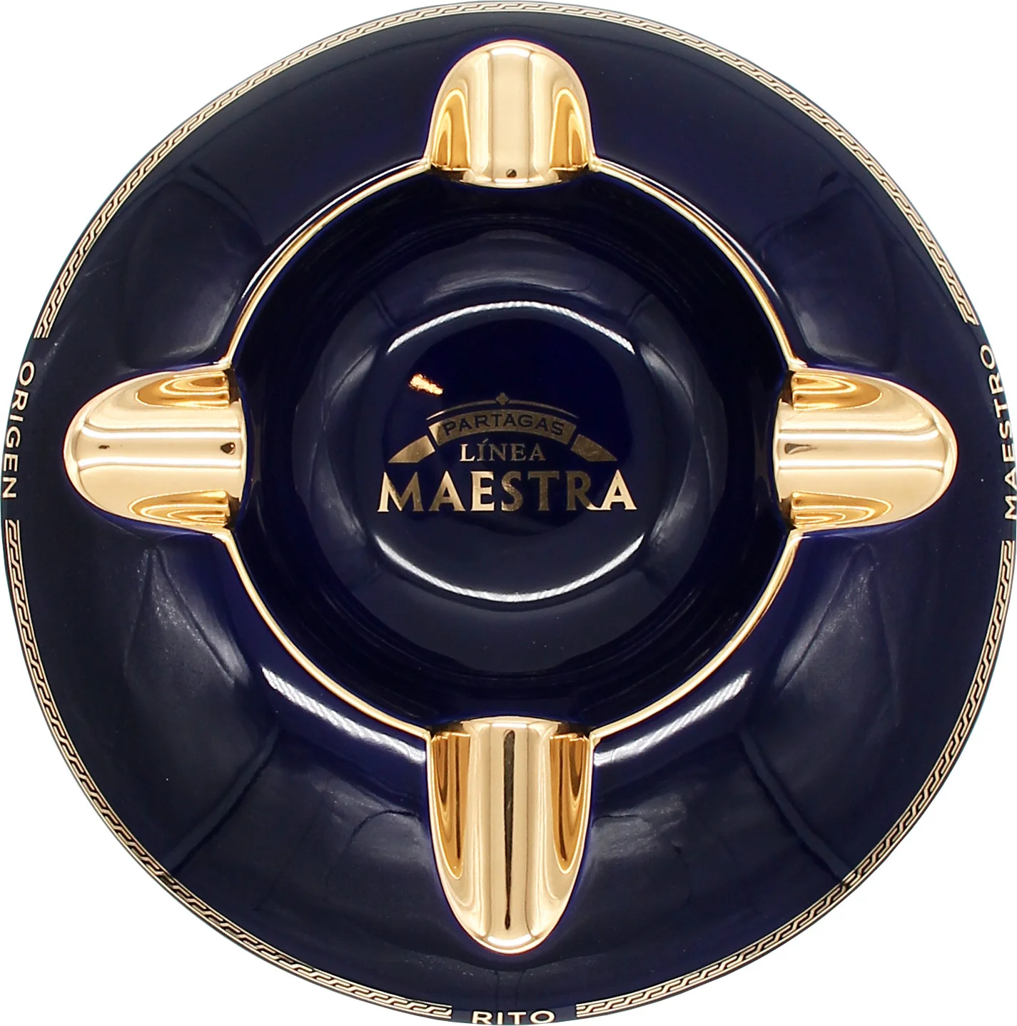 Der Partagás Aschenbecher Línea Maestra ist ein beeindruckendes Accessoire der prestigereichen Premiumlinie der kubanischen Zigarrenmarke Partagás. In tiefem Blau gehalten und mit eleganten goldenen Akzenten veredelt, strahlt dieser Aschenbecher besondere Exklusivität aus. Das Design stammt von Nelson Alfonso im Auftrag von Habanos S.A. und verbindet kunstvolle Gestaltung mit markentypischer Ausdruckskraft.