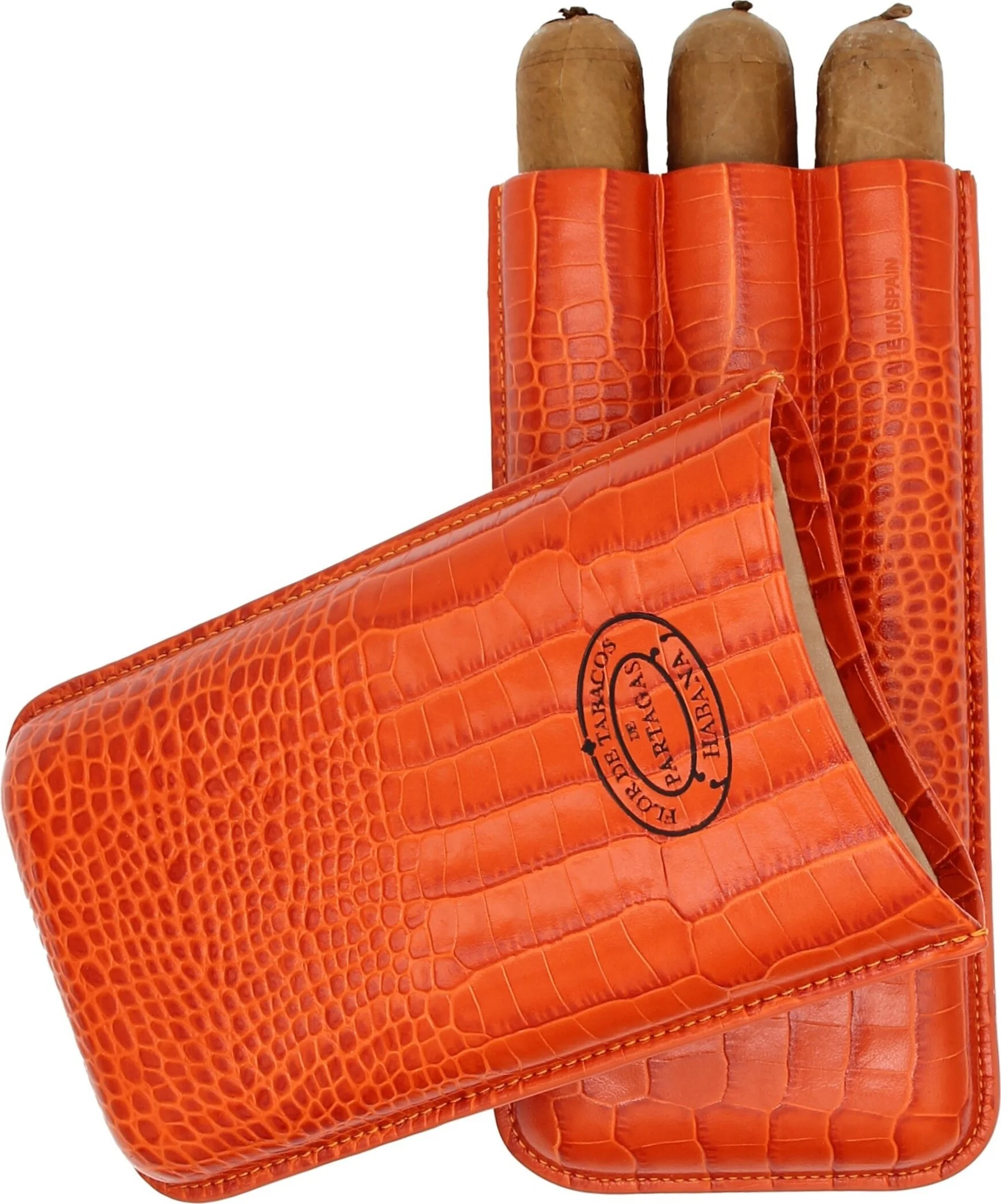 Partagas Klassik Linie Zigarrenetui Leder orange für 3 Zigarren