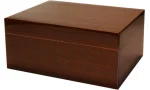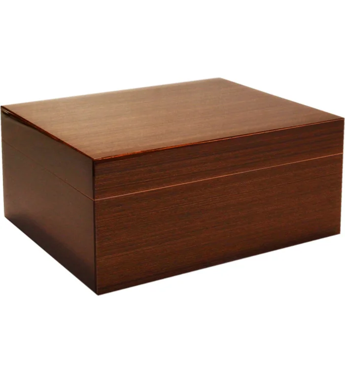 Das glänzende Lack-Finish des Humidors bedeckt ein Furnier aus angenehm, dunklem Wenge, einem superstarken, in Zentralafrika beheimateten Holz. Dieser verführerische Look ist perfekt für Zuhause oder das Büro und bietet bis zu 50 Ihrer Lieblingszigarren eine sichere und stilvolle Unterkunft.