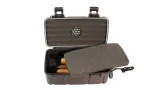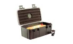 Der Innenraum ist mit Schaumstoffeinlagen ausgestattet, die Ihre Zigarren fest und sicher an Ort und Stelle halten. Die stabilen Klappschnallen verschließen den Humidor luft- und wasserdicht, wodurch Ihre Zigarren vor äußeren Einflüssen wie Feuchtigkeit und Temperaturschwankungen geschützt sind. Mit diesem Reisehumidor können Sie Ihre Zigarren selbst unter anspruchsvollsten Bedingungen optimal lagern.