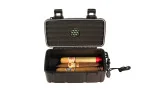 Dieser schwarze Reisehumidor aus strapazierfähigem Hartplastik wurde speziell für den sicheren Transport Ihrer Zigarren entwickelt. Ideal für Outdoor-Abenteuer oder Reisen, bietet er einen zuverlässigen Schutz für bis zu 10 Zigarren und überzeugt durch seine robuste und funktionale Ausstattung.