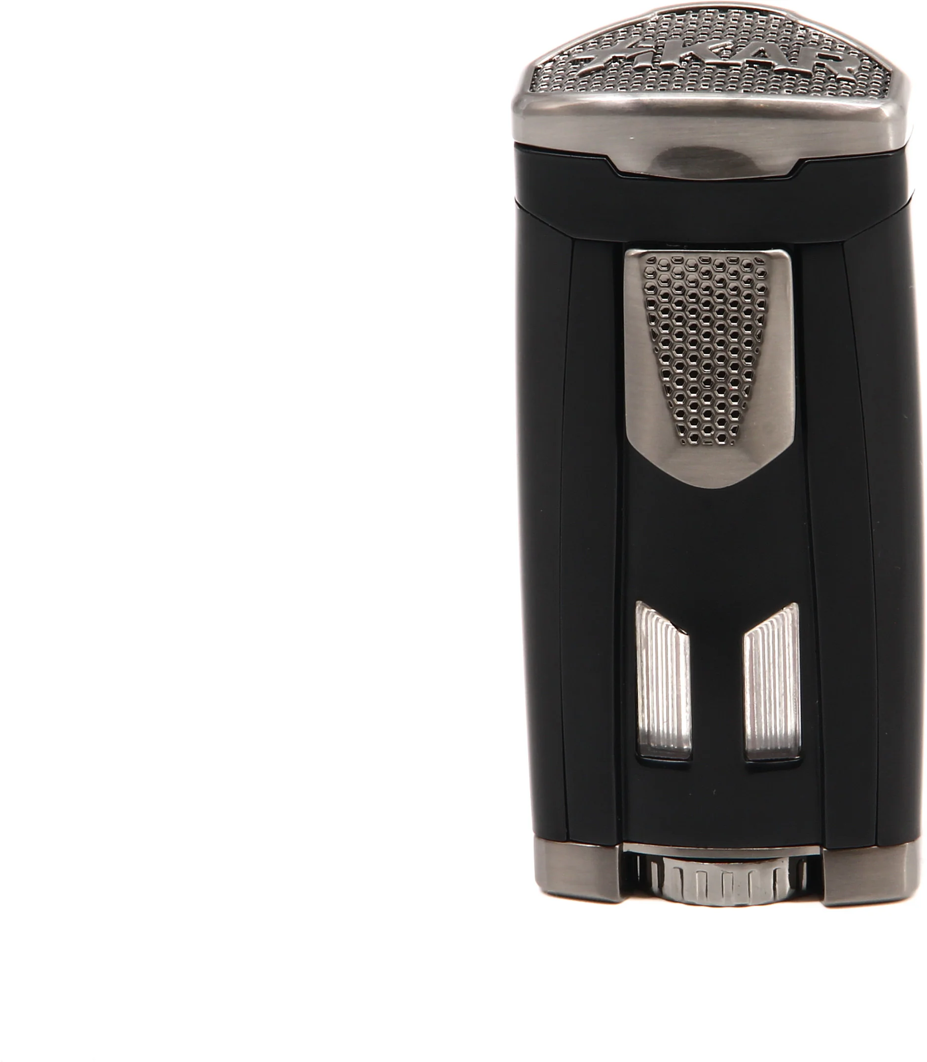 Der schützende Deckel und der herunterschiebbare Zündauslöser sind mit einer wabenförmigen Struktur versehen, die für einen besseren Griff und einen Hauch von Schwung sorgt. Die leistungsstarken Inline dreifachen Jet-Flammen des HP3 bieten eine unvergleichliche Kontrolle und Reichweite, so dass Sie Ihre Zigarren unabhängig von den Wetterbedingungen effizienter anzünden können. Die Flammen lassen sich mit dem übergroßen Einstellrad an der Unterseite des Feuerzeugs regulieren. Dank der großen Füllstandsanzeige an der Vorderseite des HP3 war es noch nie einfacher, den Füllstand im Auge zu behalten.