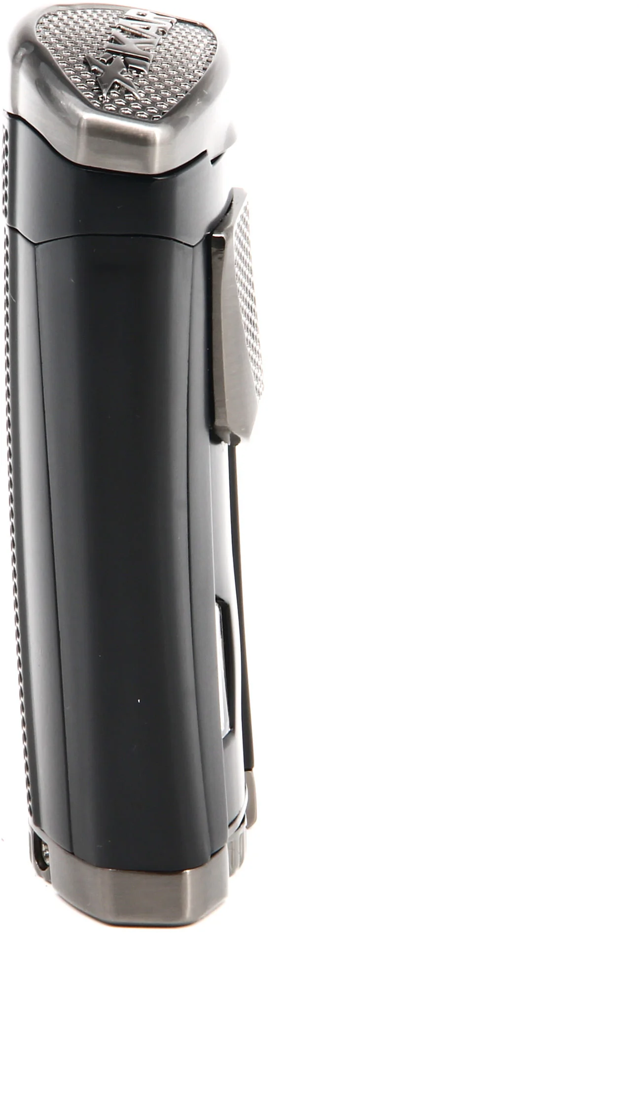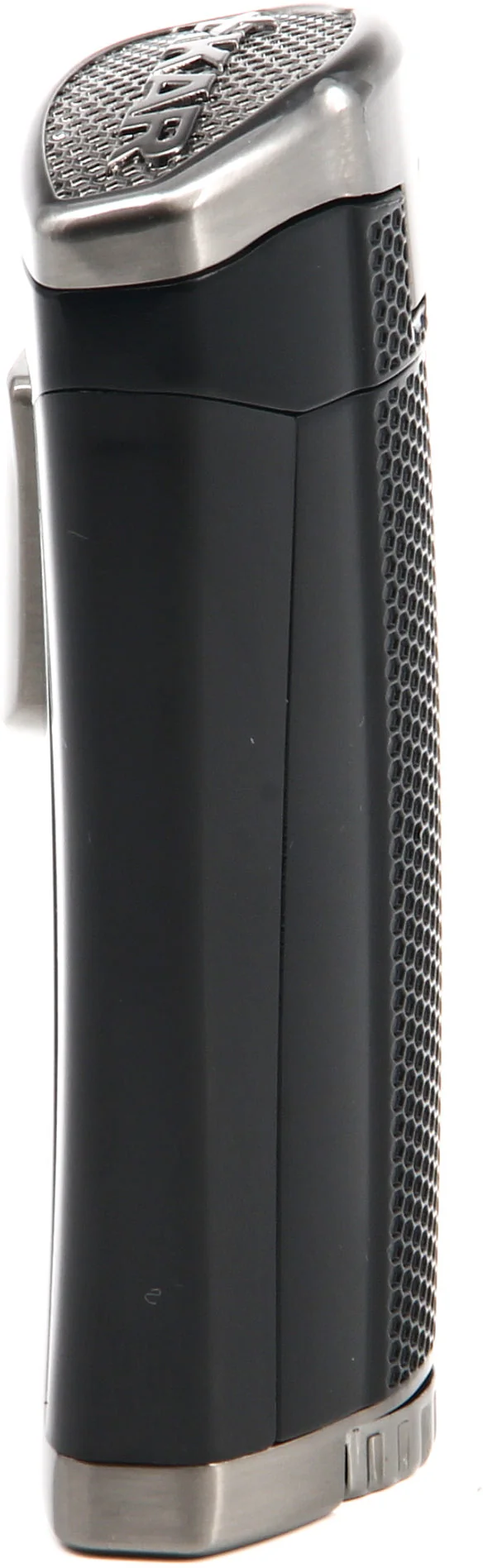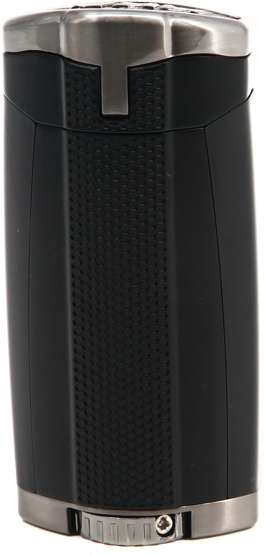 Das HP3, auch bekannt als High-Performance Triple Flame, bietet einen ausgesprochen, modernen Look mit seinem klassischen, mattschwarzen Finish im Kontrast zu den Chromakzenten. Dank seiner schlanken, ergonomischen Konturen liegt das Feuerzeug nicht nur gut in der Hand, sondern ist auch ein echter Hingucker. Es ist ein echter Blickfang!