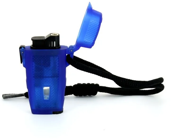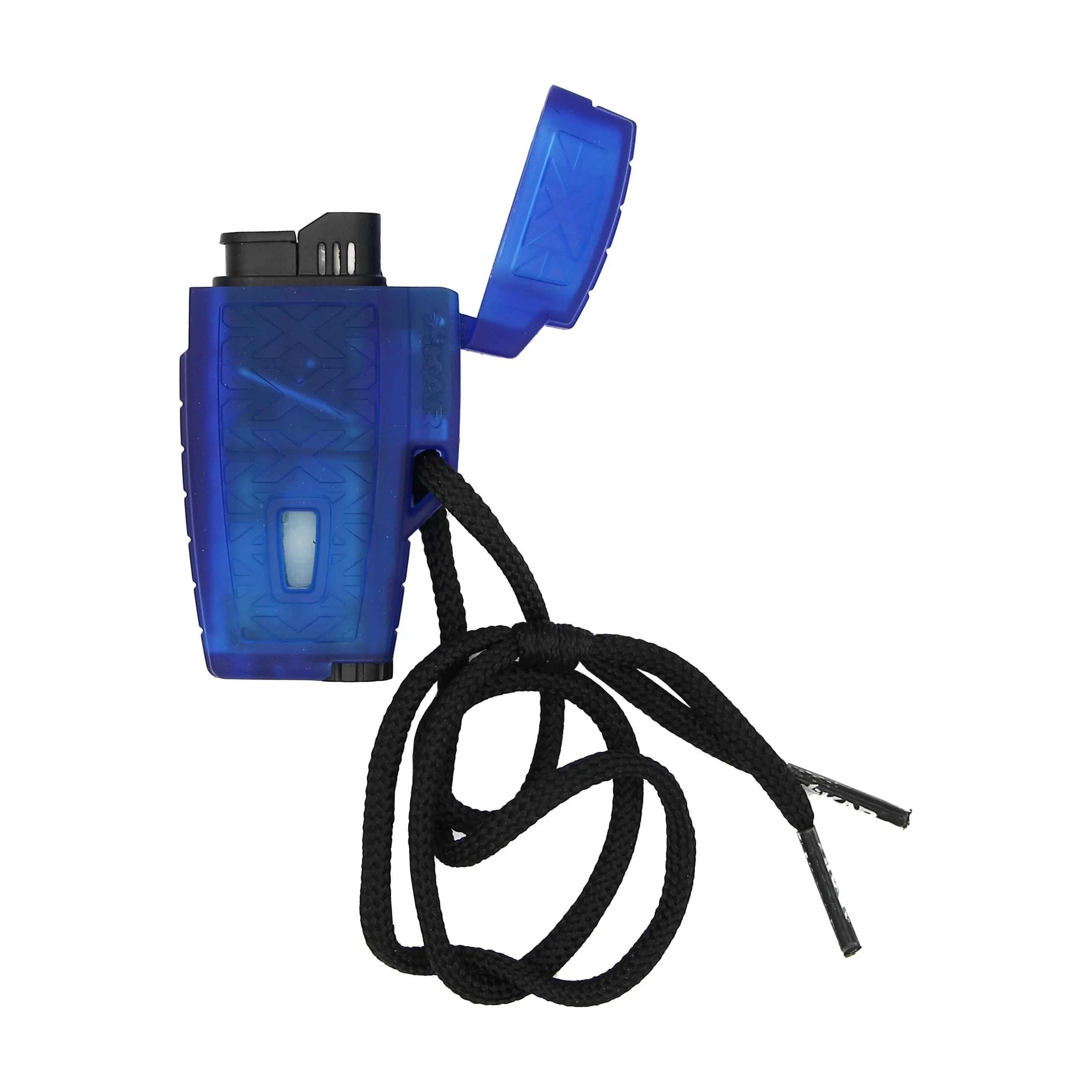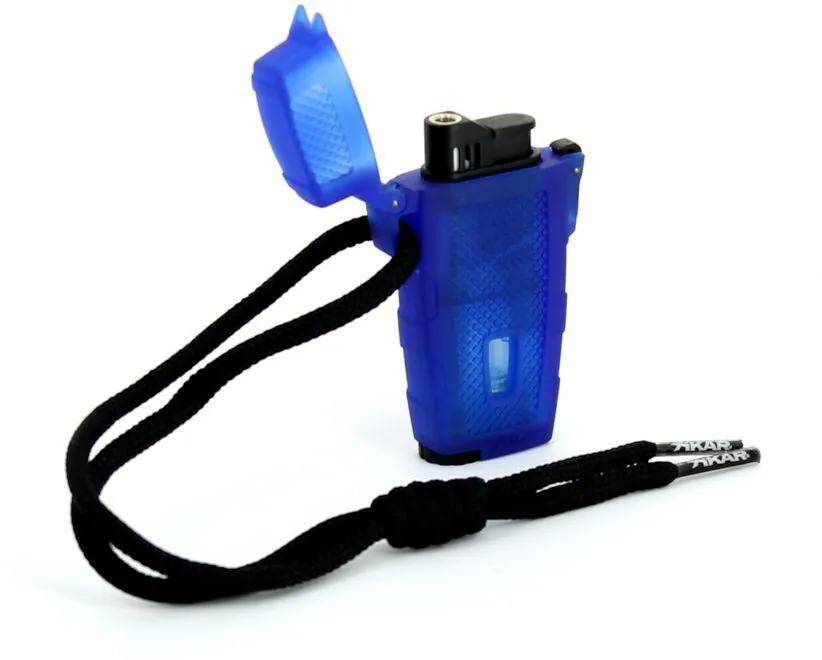 Xikar Feuerzeug Modell Stratosphere in blau. Dieses sturmsichere Außenfeuerzeug mit Turboflamme besteht aus einem Gummikörper und verfügt über eine gut sichtbare Füllstandsanzeige.