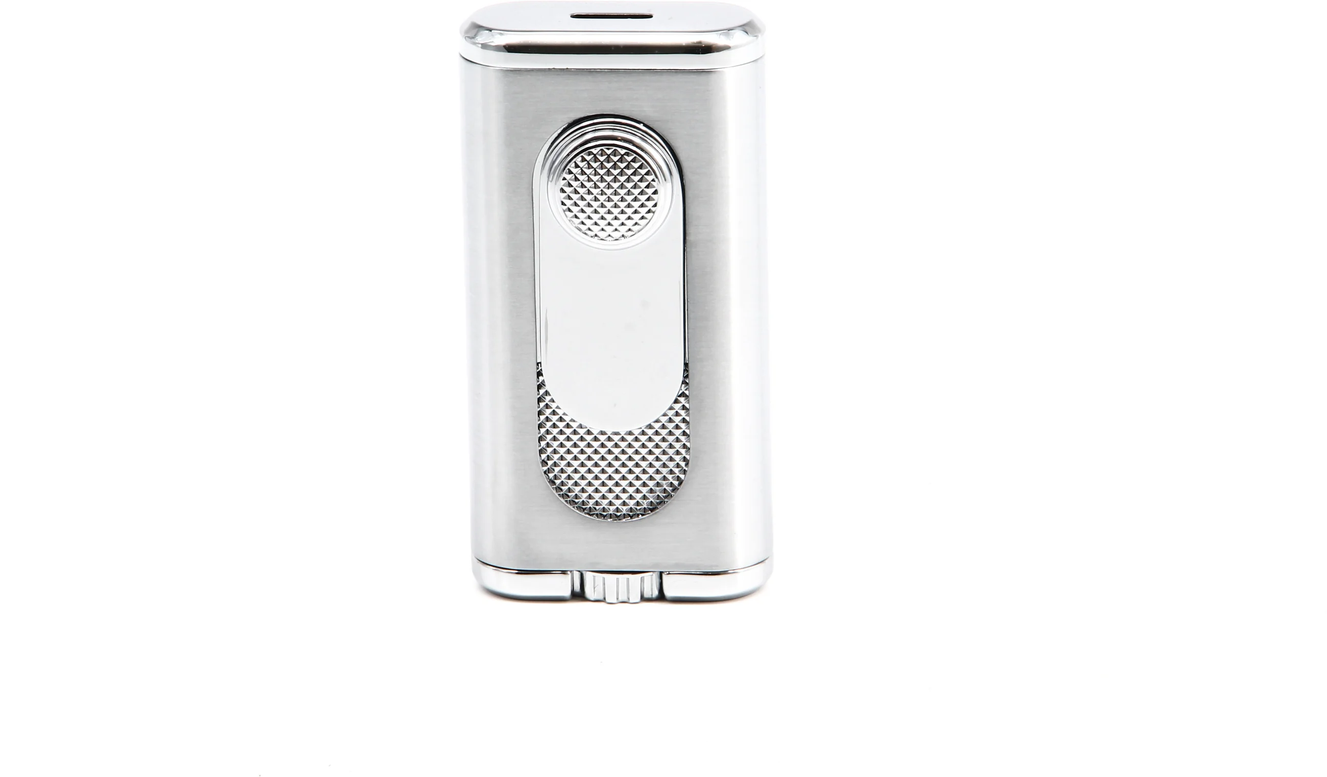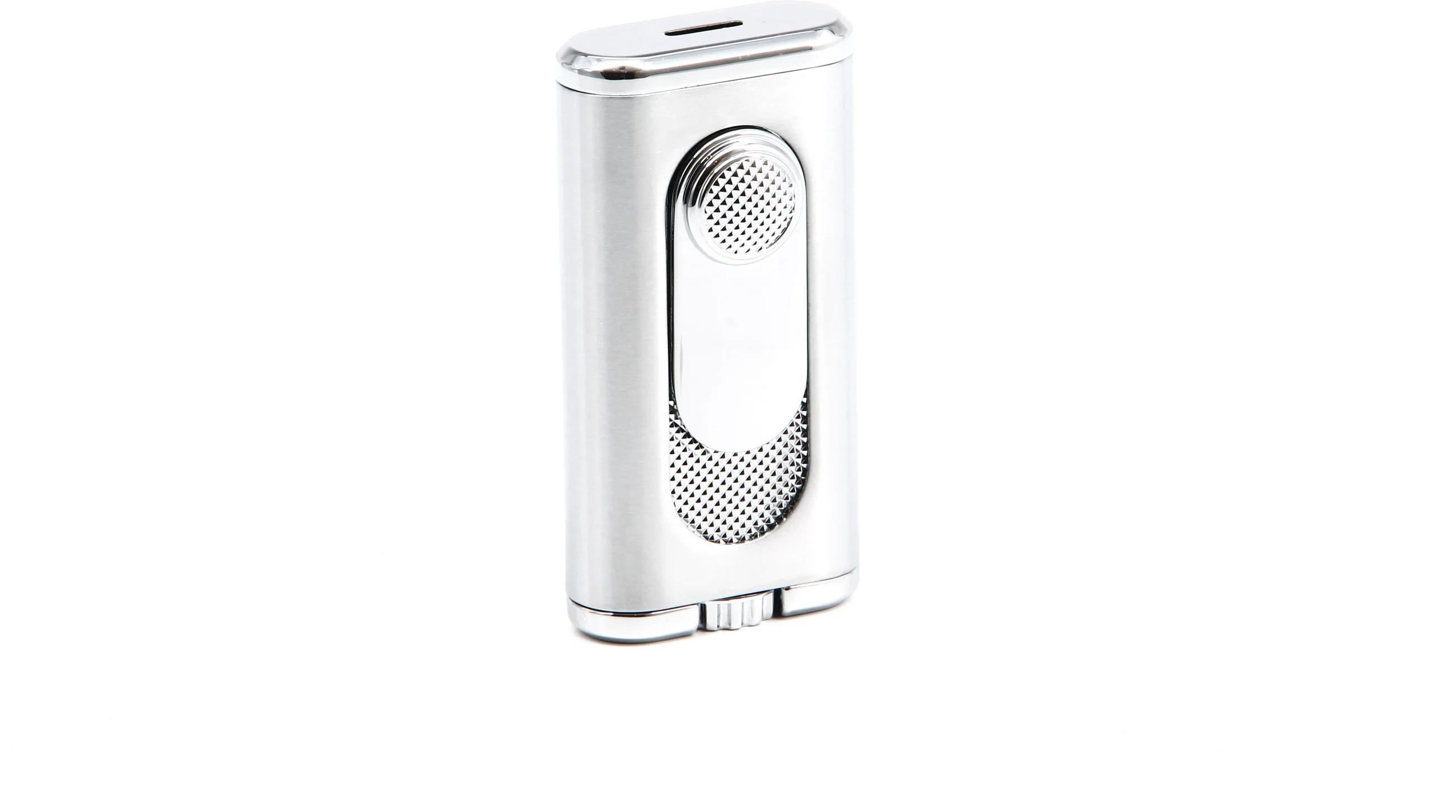 Das attraktive Feuerzeug hat ein silbernes und verchromtes Finish mit strukturierten, rautenförmigen Akzenten, die auch den herunterschiebbaren Zündauslöser zieren. Dieser elegante und moderne Look macht das Verano zu einer großartigen Wahl für Veranstaltungen, bei denen alle Augen auf Sie gerichtet sind.