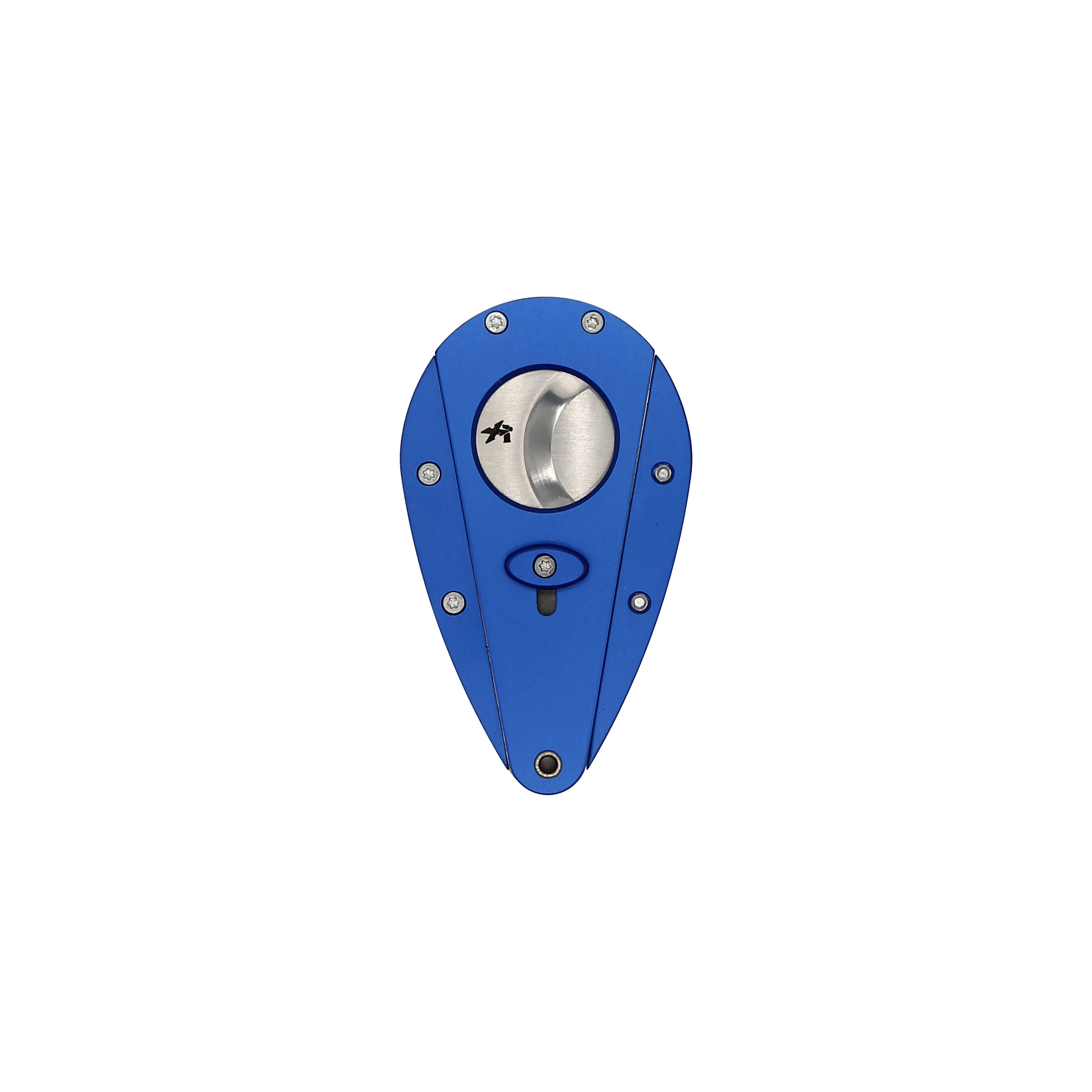 Die eloxierte Aluminiumkonstruktion dieses speziellen Xikar Xi1 Doppelklingen-Cutters ist in einem auffälligen Azurblau gefärbt. Mit den hellen rostfreien Klingen und der gegensätzlichen, ergonomischen Tropfenform wird er Ihnen mit Sicherheit ein Lächeln ins Gesicht zaubern.